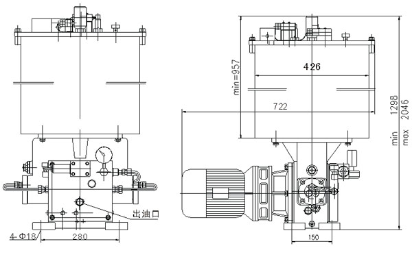一、使用条件 TB-Ⅰ、Ⅱ型电动润滑泵适用于润滑频率高、配管长、润滑点多的单、双线平油集中润滑系统。该型润滑泵采用双泵结构,从而供油量特大,且运动平稳,工作压力可在公称压力范围内任意调整,有双重过载保护。贮油桶具有油位自动报警装置,润滑泵若配备电控箱能实现集中润滑系统全自动控制,并对并对系统实现监控。 该润滑泵有下列几种供货方式: (1)、单台润滑泵。 (2)、配二位四通换向阀或液压换向阀带公用底板式,用于双线集中润滑系统。 (3)、带小车式,并配有胶管、油枪,用于不便于集中润滑的单机设备。 (4)、双泵固定式,由电动润滑泵、换向阀管路组成,一用一备,两只泵可自动切换。