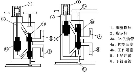 七、常见故障及排除 1、分配器不动作。 检查供油管有否压力油输送;润滑点是否阻塞,给油管是否被压扁;分配器内是否进入杂质致使活塞孔拉毛等,查明排除后即可。 2、运动指示调节装置指示杆处漏油。 拆下限位器体更换油封,可能是油封库存或使用时间过长老化或超过规定的使用环境温度,查明后更换。