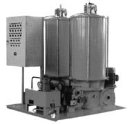 双列式电动润滑脂泵是由电动润滑脂泵、换向阀、管路附件等组成。在同一底座上安装有两台电动润滑脂泵,一台常用、一台备用,双泵可以自动切换,通过换向阀接通运转着的泵的回路,不影响系统的正常工作,润滑脂泵的运转由电控系统来操纵,二台泵也可以同时工作。它具有压力高、流量大、远距离输脂,安全可靠等特点。