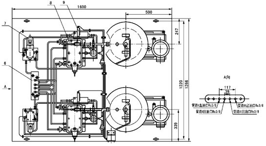 1 - 压力表;2 - 压力表;3 - 贮油器;4 - 电动机;5 - 电动润滑脂泵