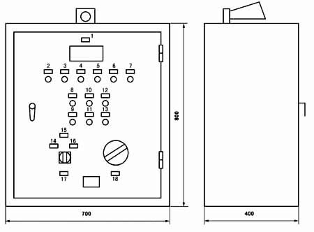 图1-1-8 XYZ-250G~XYZ-1000G 稀油站电控柜外形图
