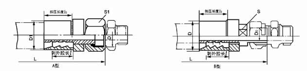 2、附录表中d1 括号内尺寸为扩口式管接头标准中所缺少的螺纹,由使用者自己配制。尺寸L=l+2l2